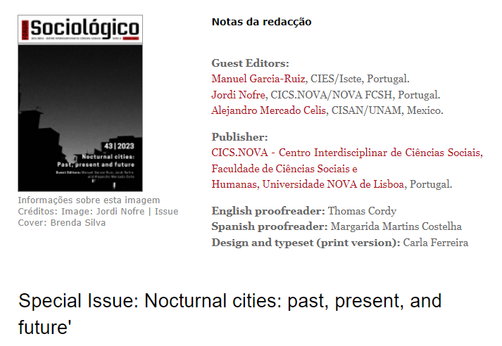 Special issue, “Nocturnal cities: past, present, and future,” Forum Sociológico